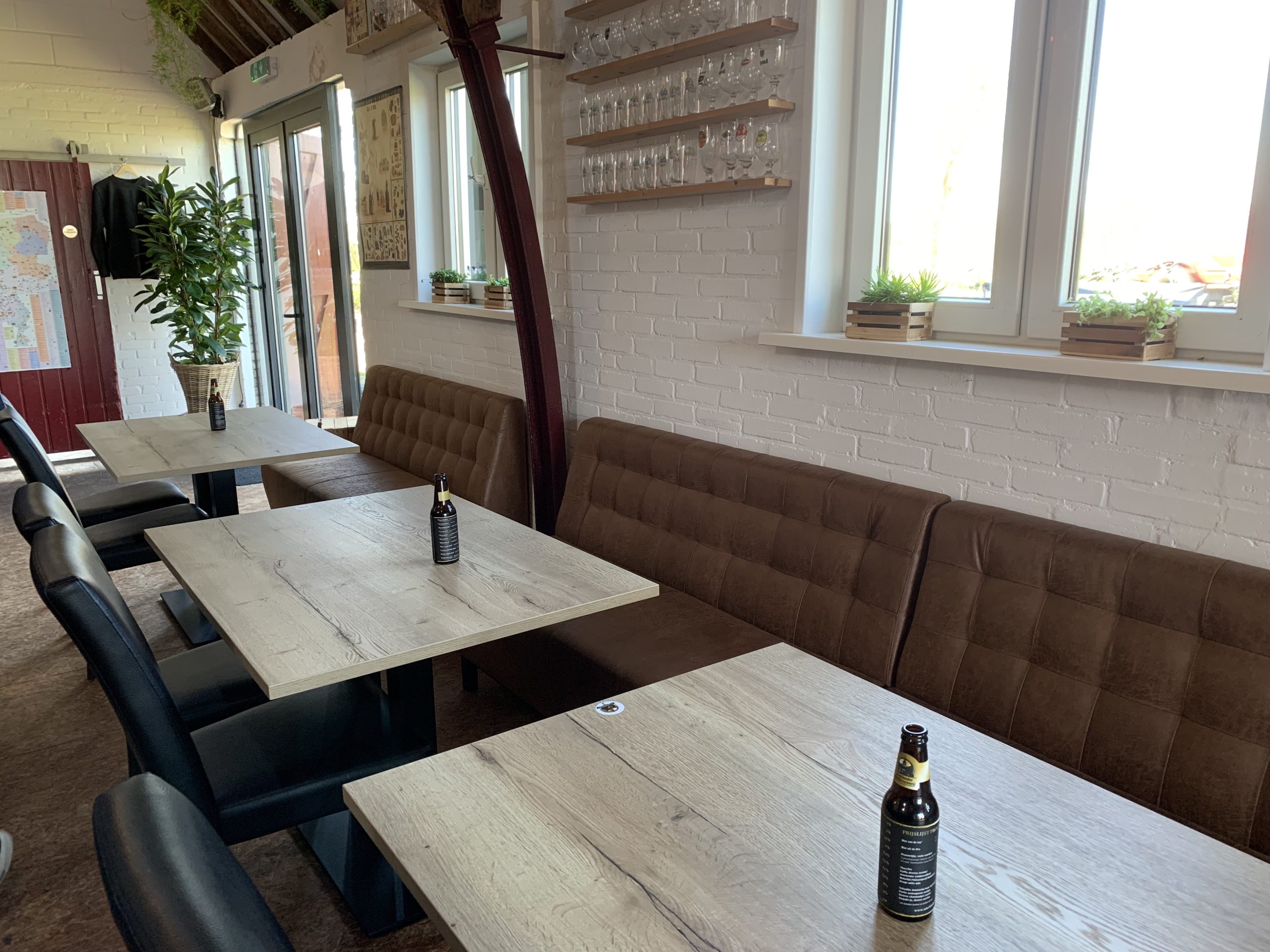 Het proeflokaal is een prachtige grote ruimte met houtkachel en een echte “beerwall of fame”, met zo’n 1400 verschillende bierflessen en vele bierglazen. Vorig jaar hebben we een prachtige nieuwe bar gemaakt met een tapwand met maar liefst 12 taps!! Dat is pas genieten….